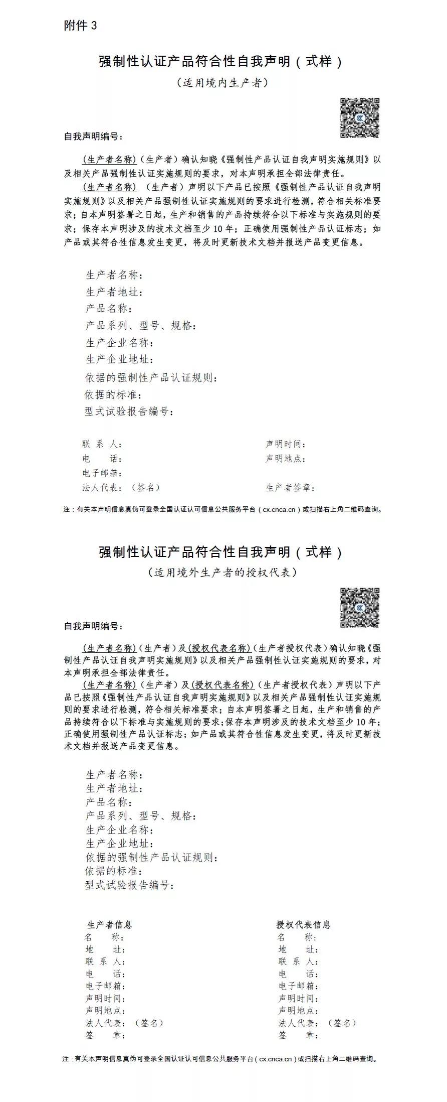 3. 強制性認證產(chǎn)品符合性自我聲明式樣