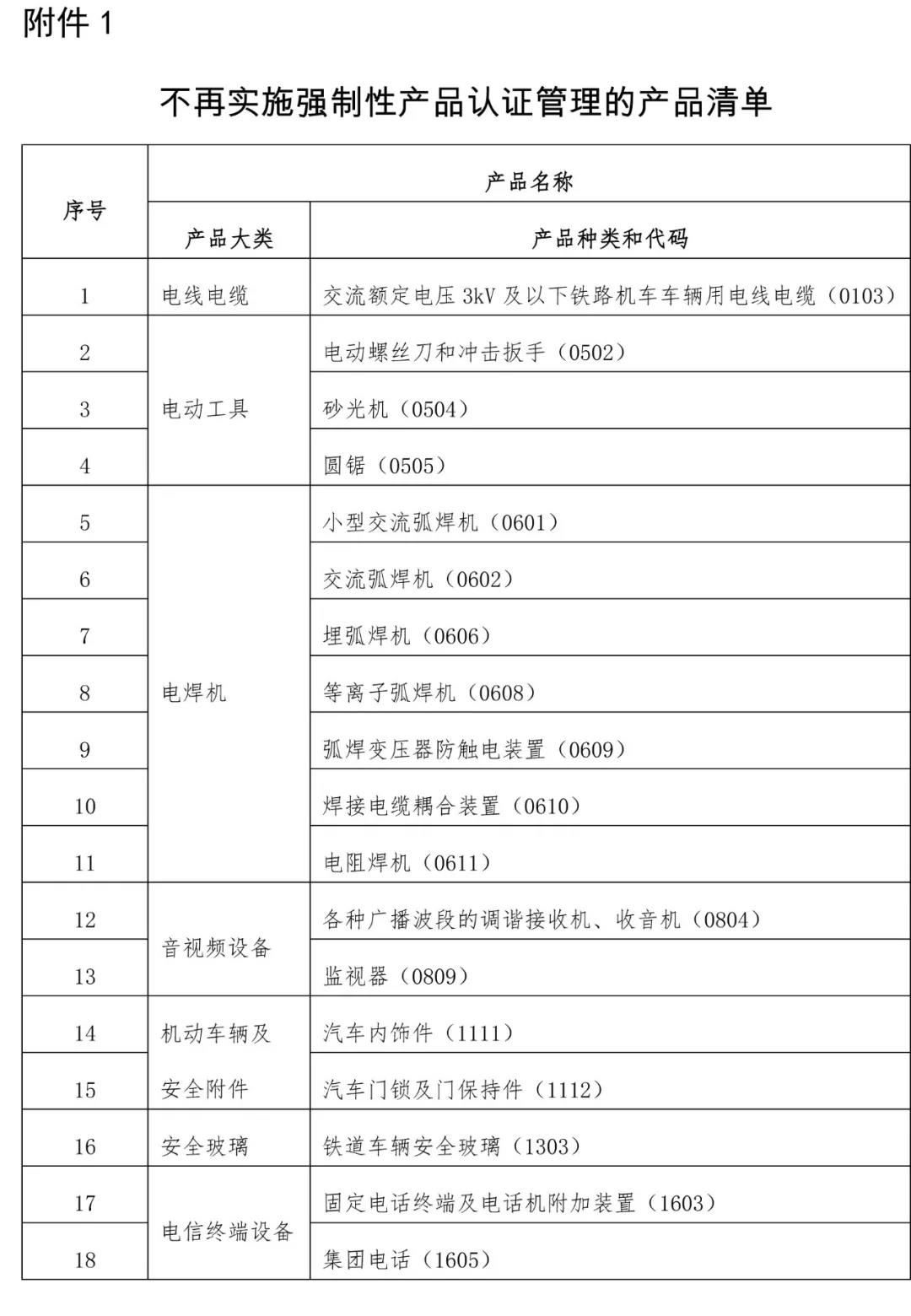 附件:1. 不再實施強制性產(chǎn)品認證管理的產(chǎn)品清單