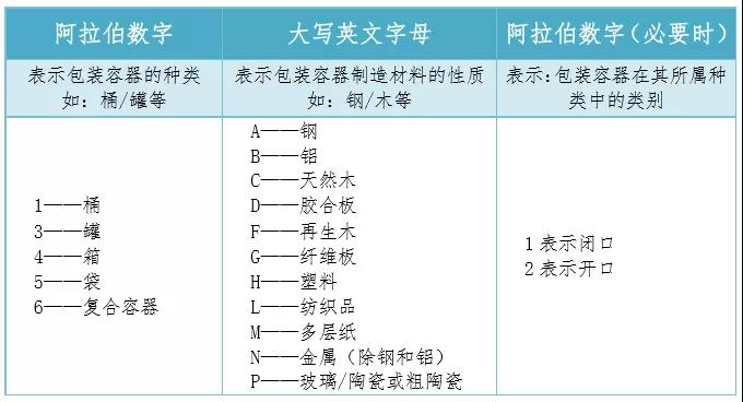 每一個包裝容器必須帶有持久、易辨認以及與包裝規格相比大小適當的明顯標記,對于毛重超過30kg或體積超過30L的包裝,在其頂部或邊上必須有標記;標記字母、數字和符號的高度必須≥12mm。包裝件毛重小于等于30kg或體積小于等于30L時,標記字母≥6mm。5kg或5L以下的包裝也必須有適當大小的標記。