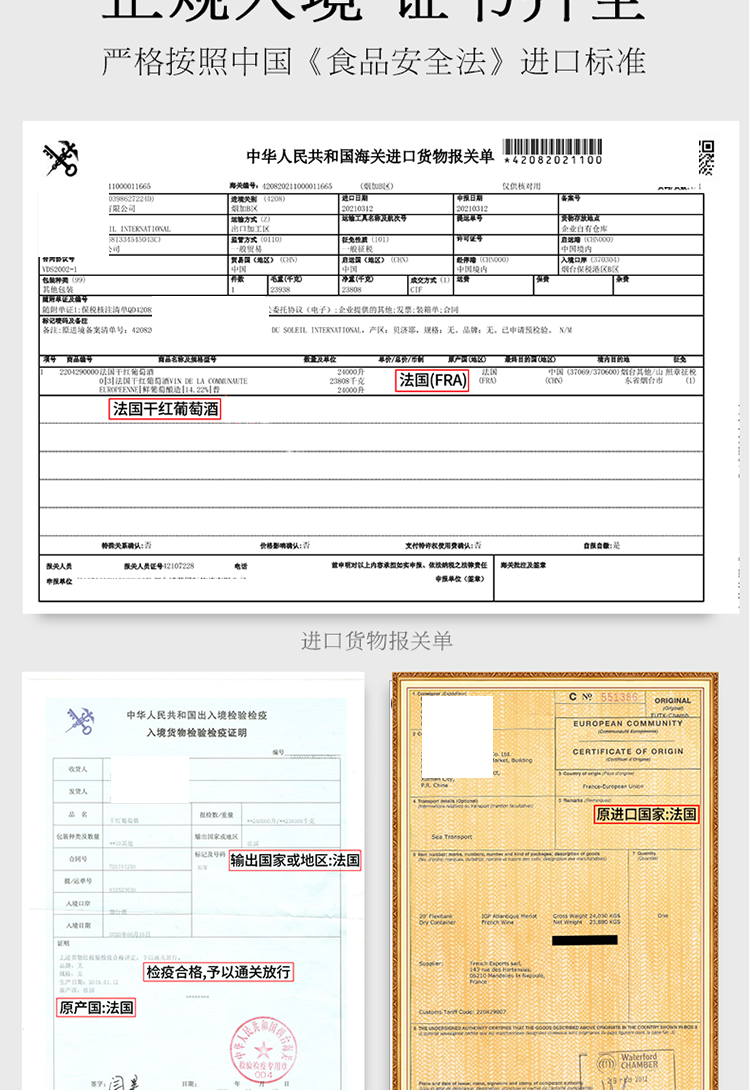 法國紅酒進(jìn)口報關(guān)單和衛(wèi)生證及港口申報資料案例匯總圖