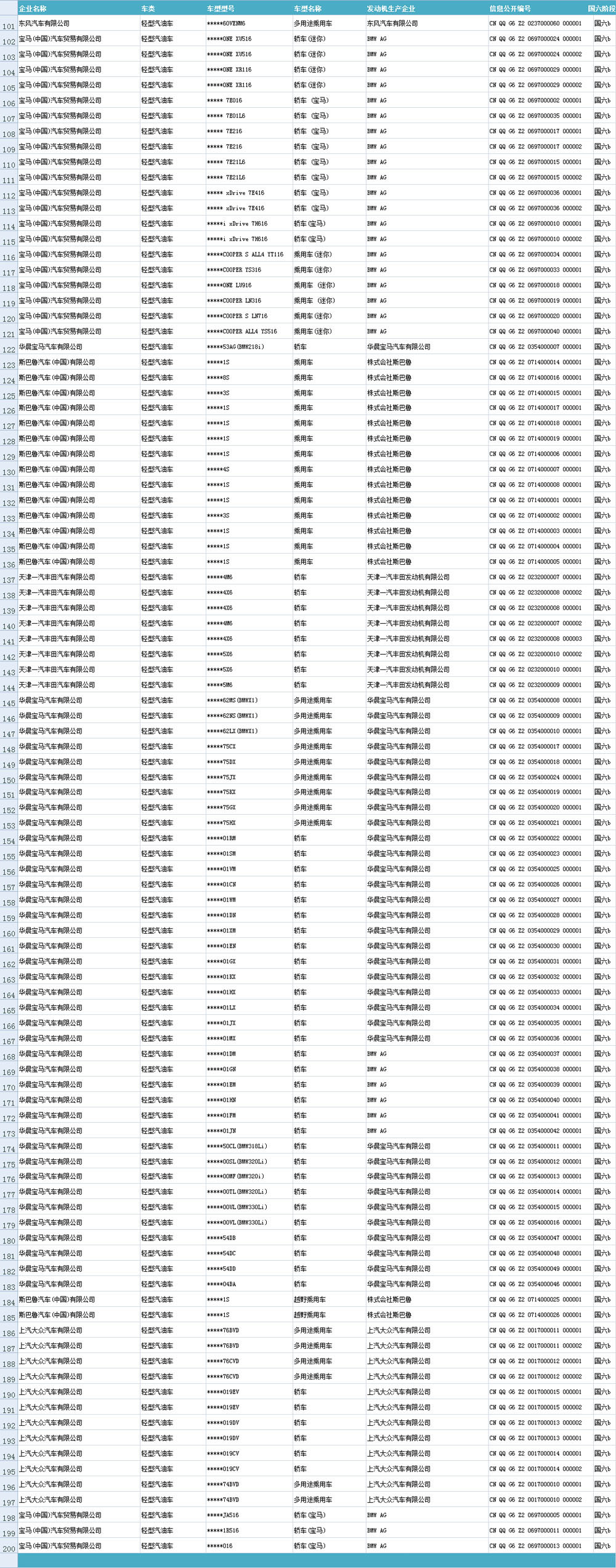 輕型車:共有412家企業9903個車型(47805個信息公開編號)40148632輛車進行了輕型車國六環保信息公開,與上周匯總環比增加57個車型、403772輛車(符合6b階段限值的車型占比96.5%、符合6b階段限值的車輛占比96.7%)。其中,國內生產企業385家、9043個車型、38250000輛,國外生產企業28家、860個車型、1898632輛;輕型汽油車企業398家、8847個車型、38267673輛,輕型混合動力車企業51家、319個車型、1418352輛,輕型柴油車企業62家、525個車型、392296輛,輕型燃氣車企業13家、207個車型、46042輛,輕型兩用燃料車企業3家、3個車型、24269輛,輕型甲醇單燃料汽車企業2家、2個車型。